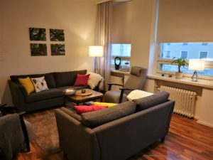 Täällä ollaan hei! Kaksi eri tahoa, kaksi eri työskentely-ympäristöä. Toisessa saattaa palaa takkatuli tai mahdollistua kävellen toteutettavat käynnit, toiseen pääsee bussilla oven eteen tai autoparkkiin talon alle. Molemmat paikat olen pyrkinyt luomaan omalla tavalla kodikkaiksi ja käteviksi tulla, jotta toteutuisi toiveeni tarjota ”tilaa hengittää – tilaa ajatella – tilaa tuntea”. Mitenkähän olen siinä onnistunut?